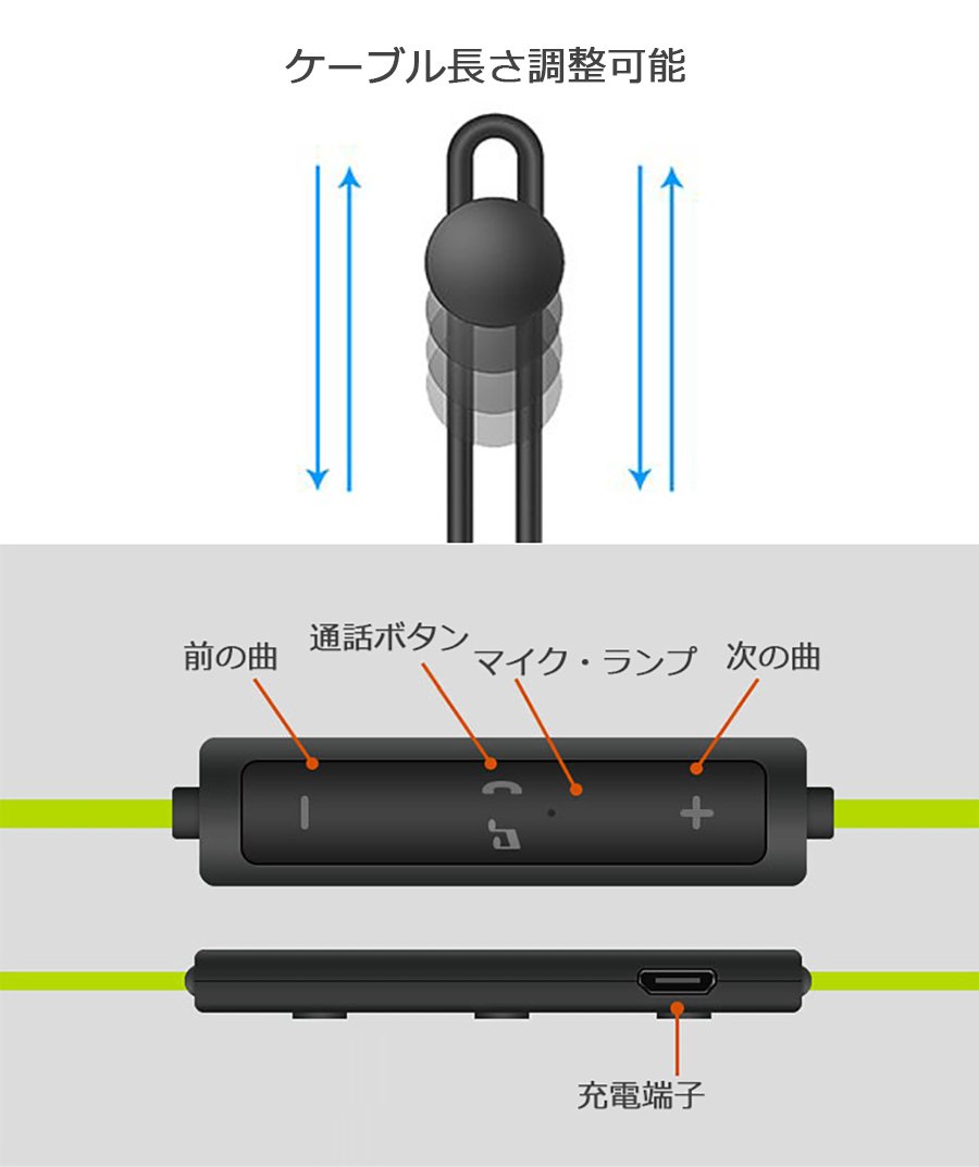 付属品はイヤーピースの替え、充電用USBケーブル。細身の平形ケーブルにタッチノイズはほとんどない。