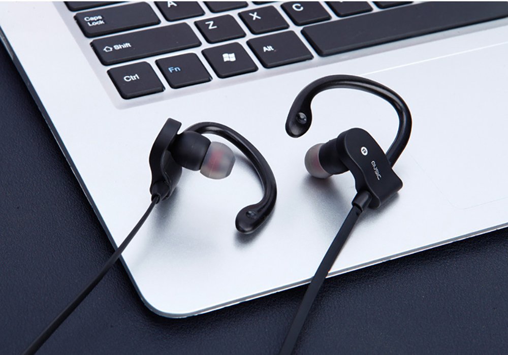 差し込まれるイヤーピースとイヤーフックが装着感を高めているワイヤレスイヤホン。
