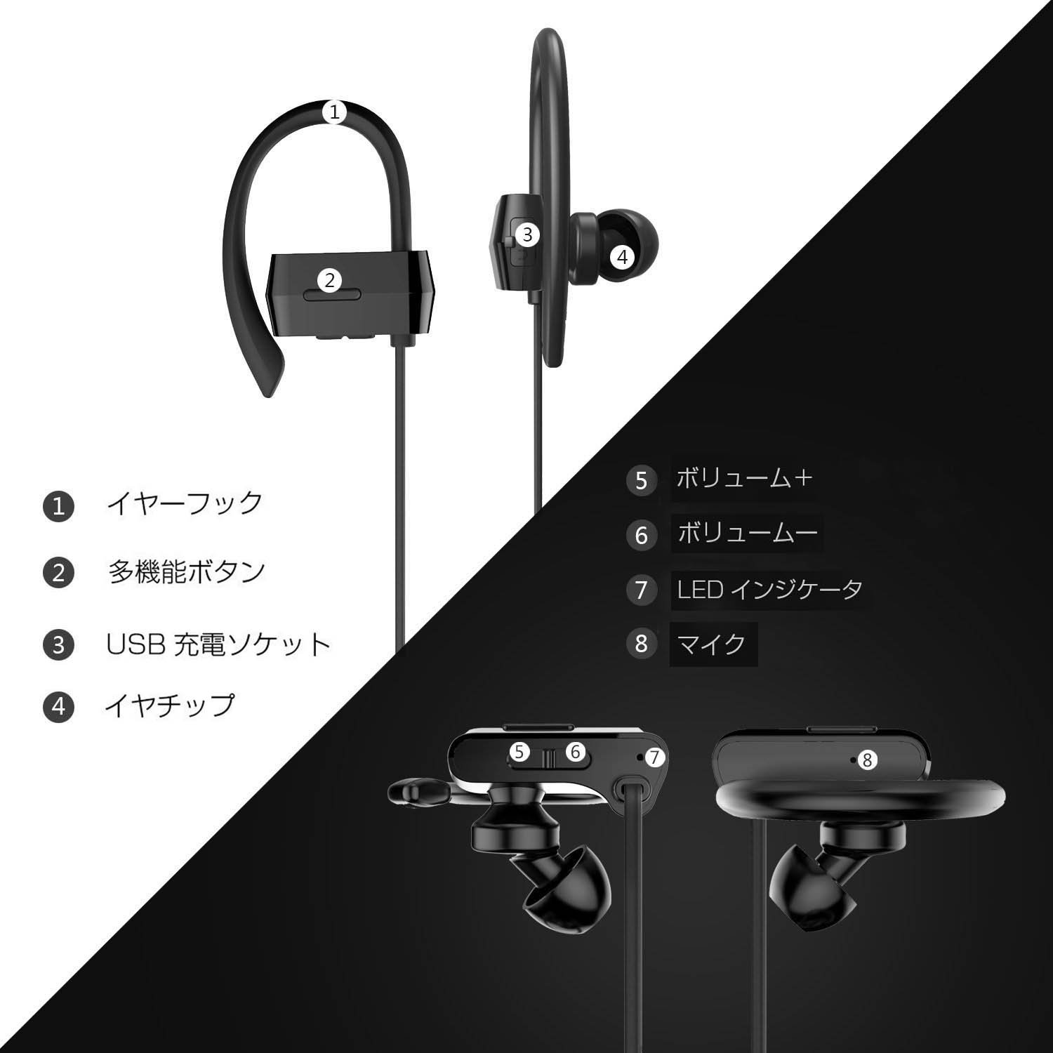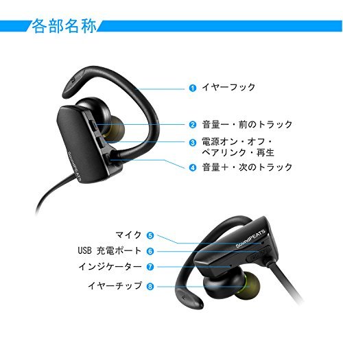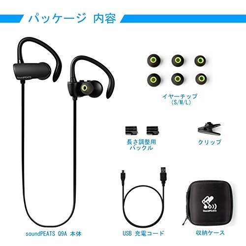 〔5色展開〕SoundPEATS サウンドピーツ Bluetooth イヤホン 高音質 aptXコーデック対応【メーカー直販 / 1年間保証】低遅延 外れにくい 耳掛け式 Bluetooth 4.1 + CSR社チップ採用 IPX4防水 IP4X防塵 スポーツイヤホン マイク付き ハンズフリー通話 CVC6.0ノイズキャンセリング 音漏れ防止機能 ブルートゥース イヤホン Bluetooth ワイヤレス イヤホン Bluetooth ヘッドホン Q9A ブラック