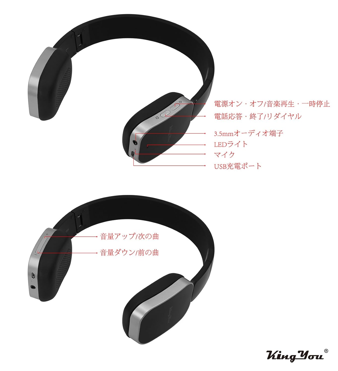 KingYou bluetooth 4.0 ヘッドフォン シアター ワイヤレス 高音質 ハイレゾ音源対応 オンイヤー ヘッドホン 折りたたみ式 有線可能 (HD-01 ブラック )